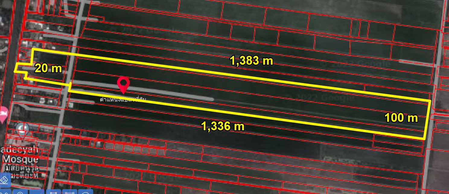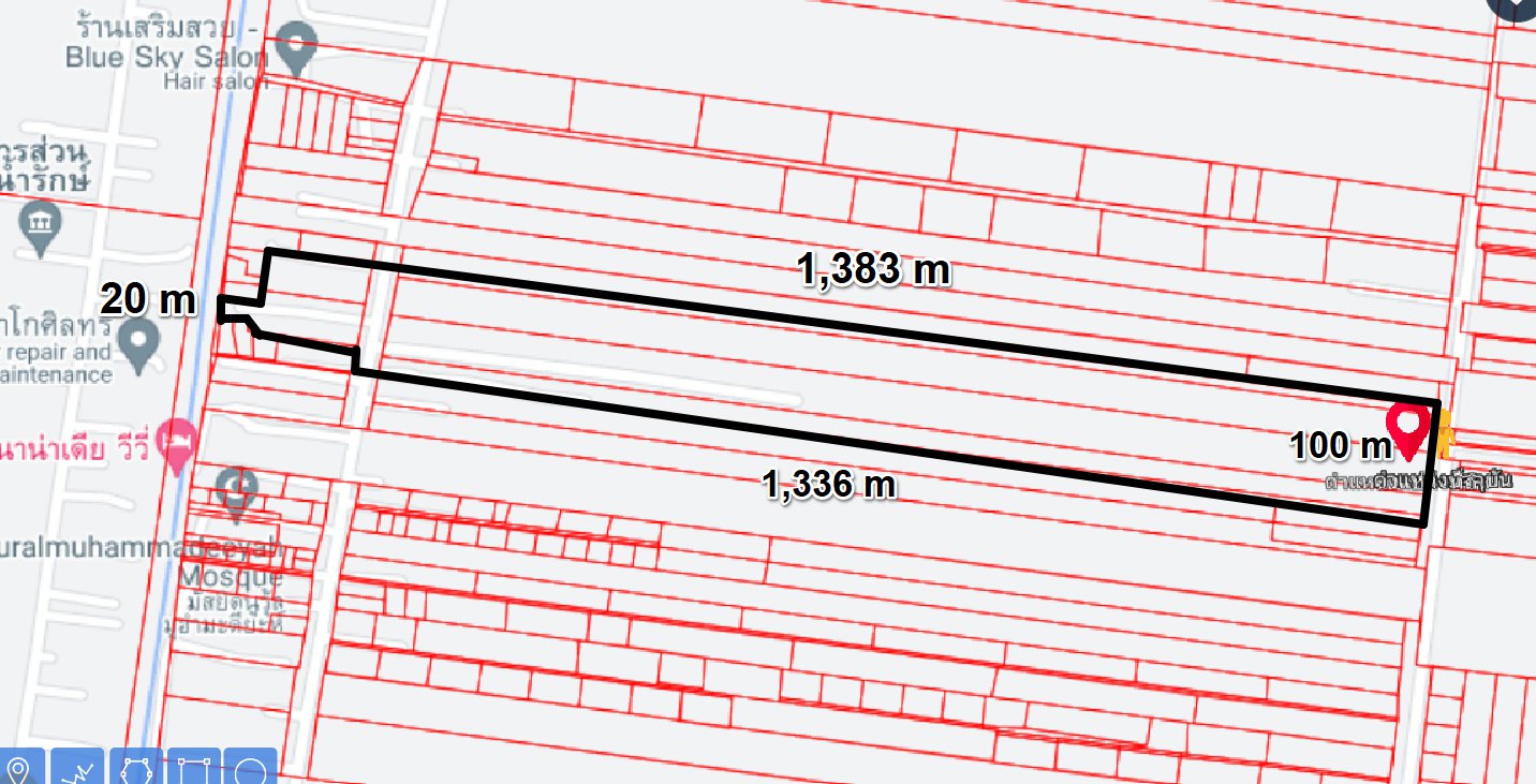 หน้ากว้าง 20 เมตร X ยาว 1,380 เมตร