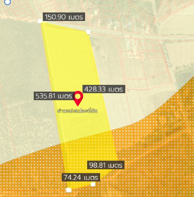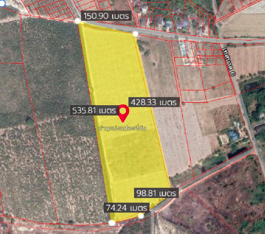 หน้ากว้างติดถนนลาดยาง 150 เมตร X ยาว 535 เมตร