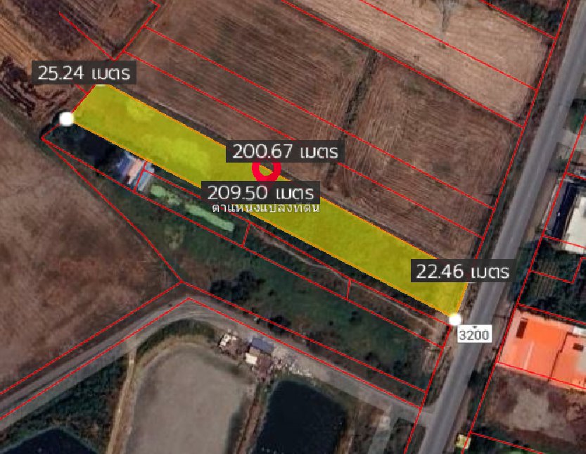 หน้ากว้างติดถนนเส้น3200 22 เมตร X ยาว 209 เมตร