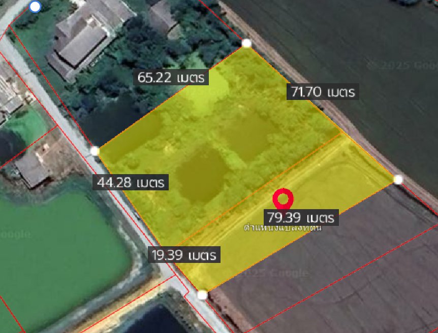หน้ากว้างติดถนนลูกรัง 65 เมตร X ยาว 79 เมตร