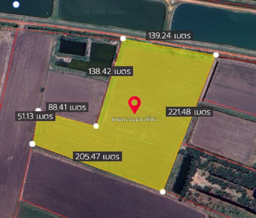 หน้ากว้าง 221 เมตร X ยาว 205 เมตร