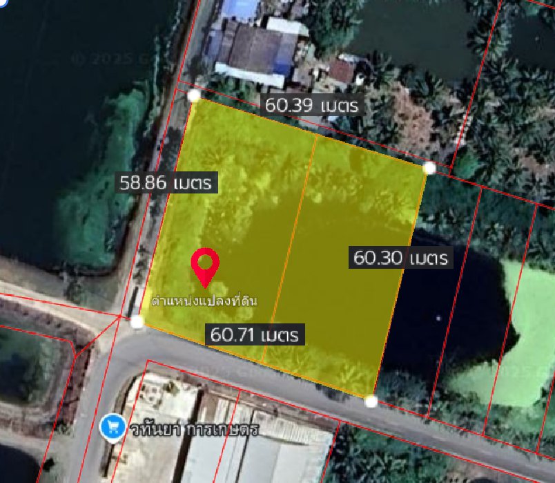 หน้ากว้างติดถนนลาดยาง 60 เมตร X ยาว 60 เมตร