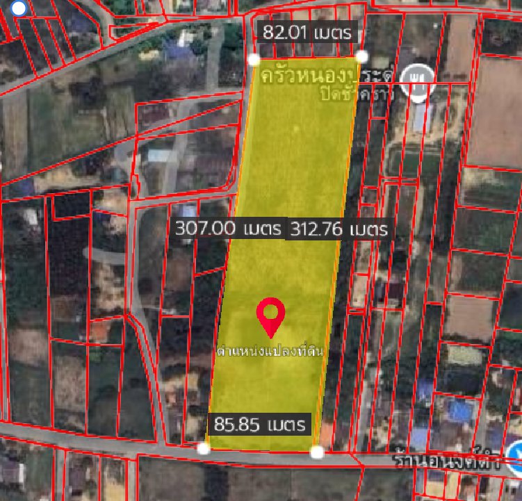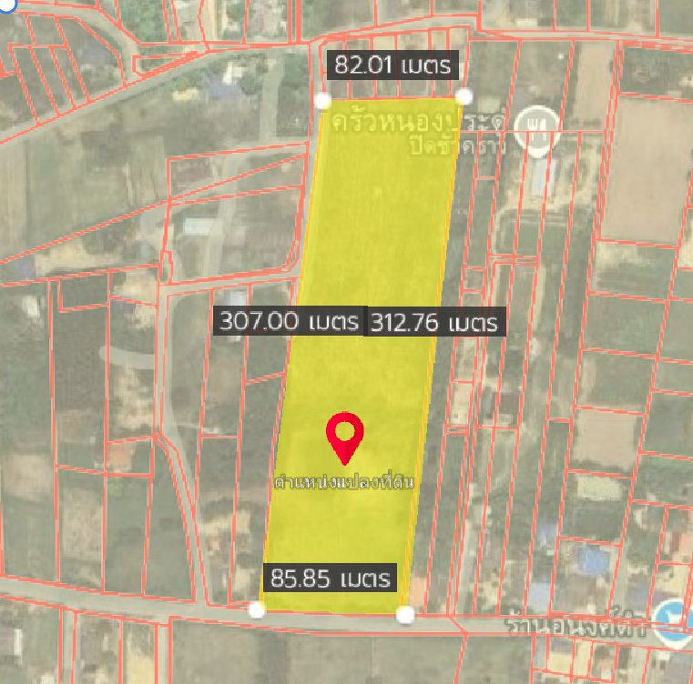 หน้ากว้างติดถนนลาดยาง 85 เมตร X ยาว 315 เมตร