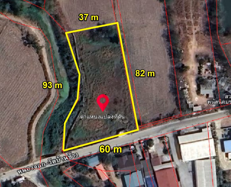 หน้ากว้างติดถนนคอนกรีต 60 เมตร X ยาว 93 เมตร