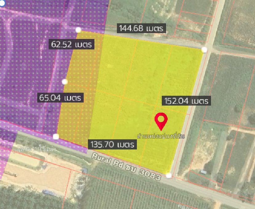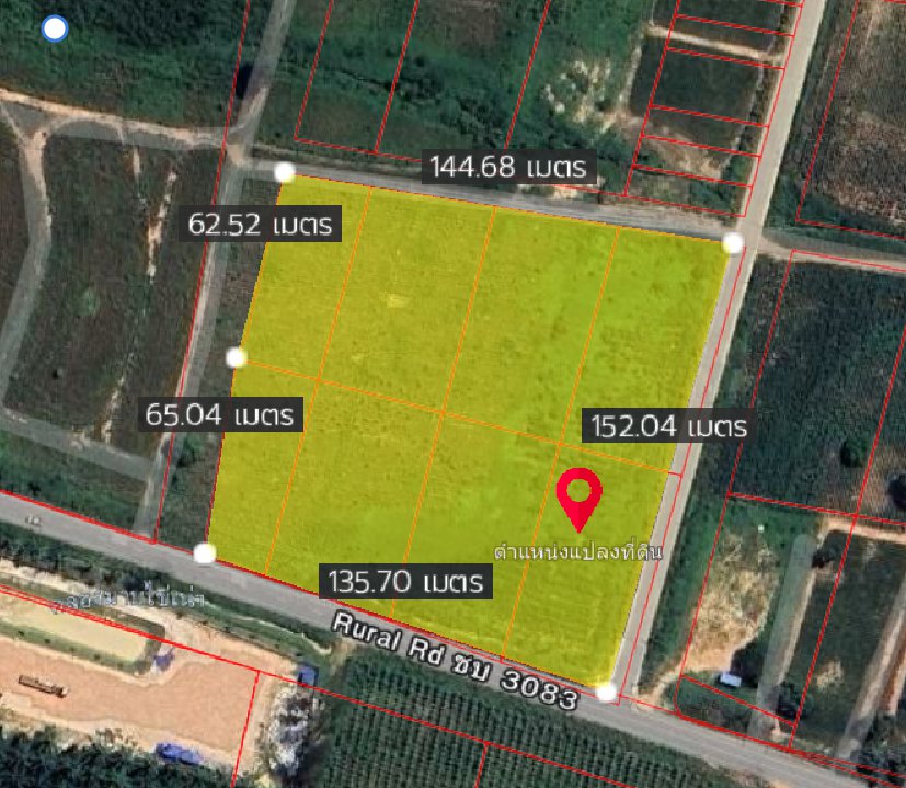 หน้ากว้างติดถนนเส้นชบ.3083 135 เมตร X ยาว 152 เมตร