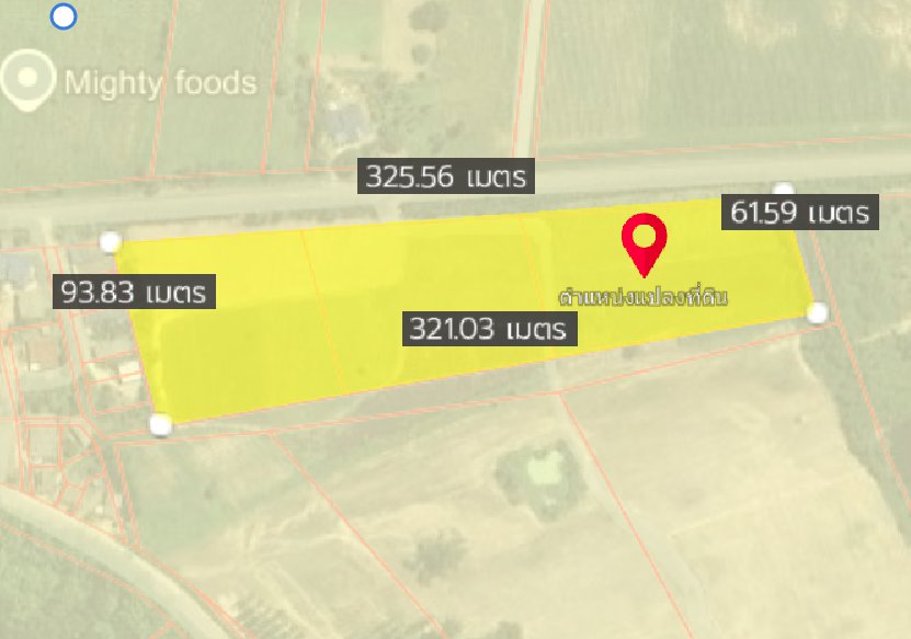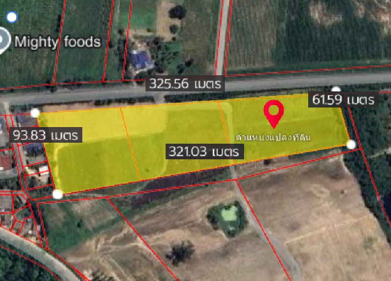 หน้ากว้างติดถนนคอนกรีต 325 เมตร X ยาว 93 เมตร