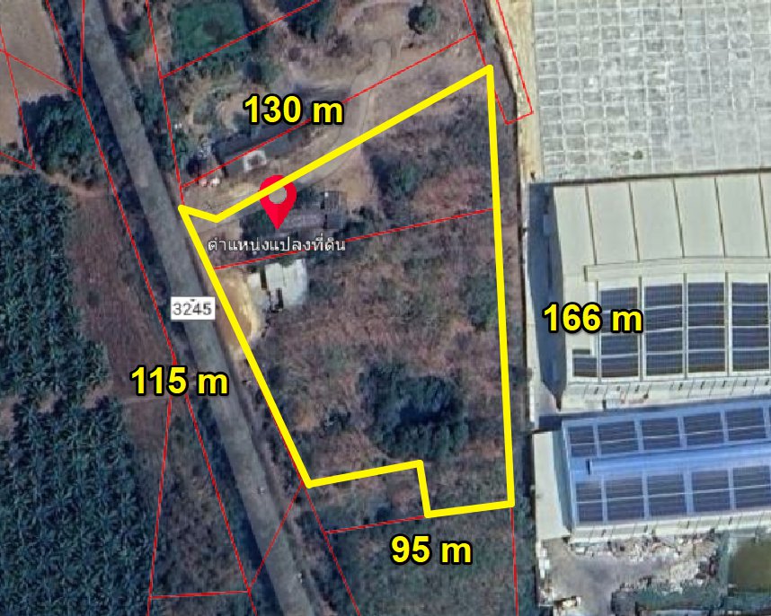 หน้ากว้างติดถนนเส้น3245 115 เมตร X ยาว 130 เมตร