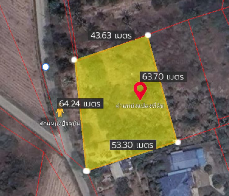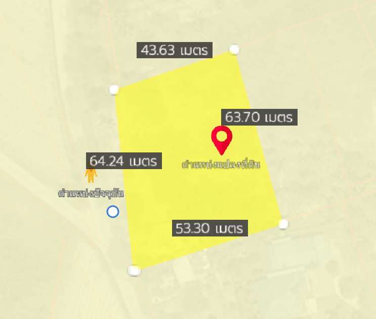 หน้ากว้างติดถนนคอนกรีต 64 เมตร X ยาว 53 เมตร