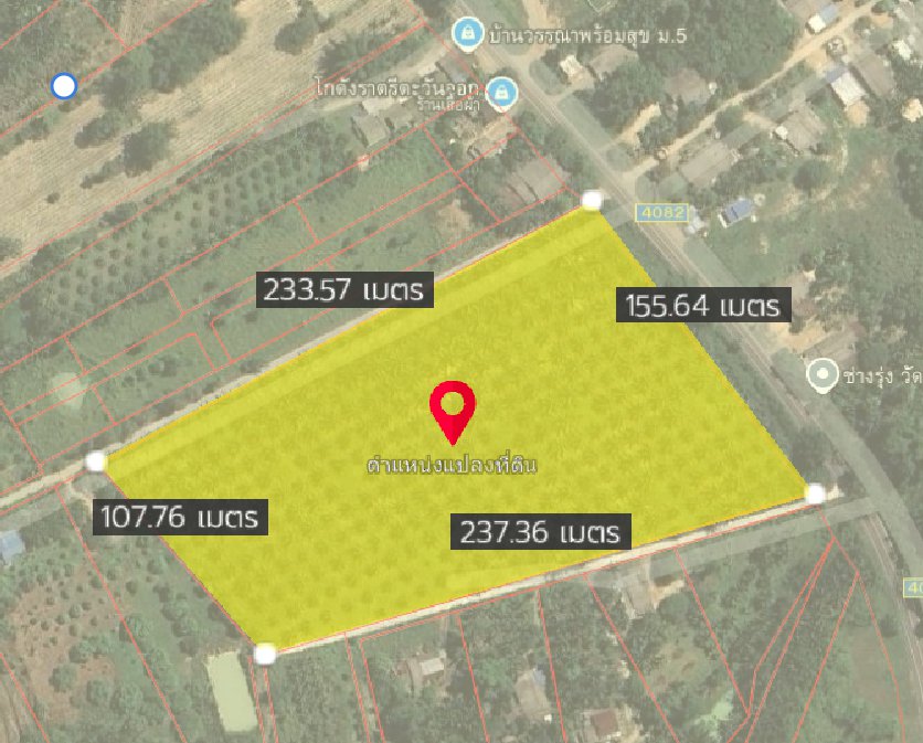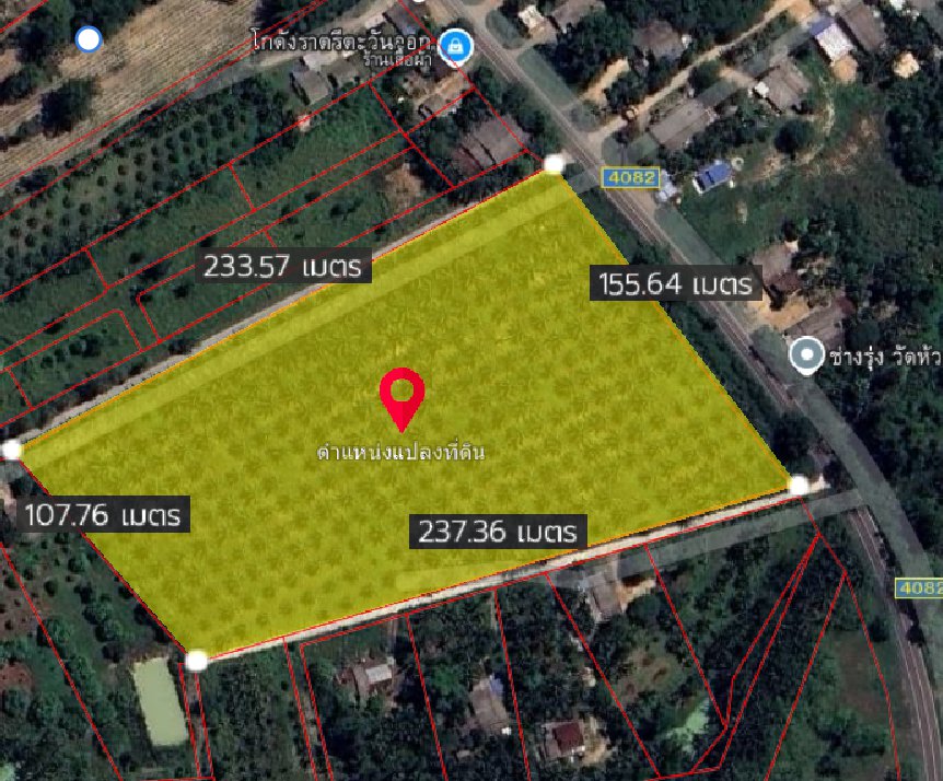 หน้ากว้างติดถนน4082 155 เมตร X ยาว 237 เมตร