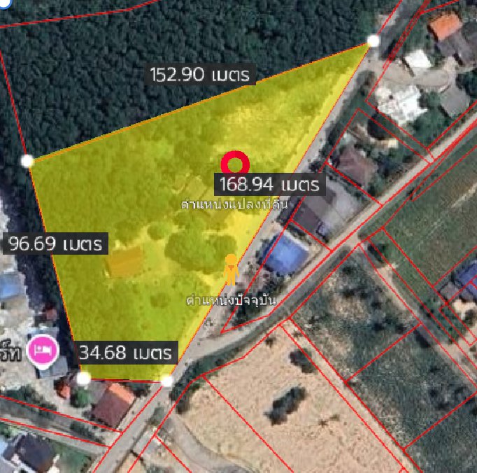 หน้ากว้างติดถนนคอนกรีต 168 เมตร X ยาว 152 เมตร