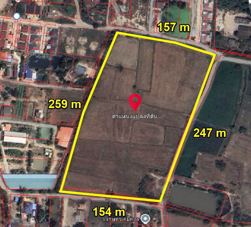 หน้ากว้างติดถนนคอนกรีต 247 เมตร X ยาว 157 เมตร