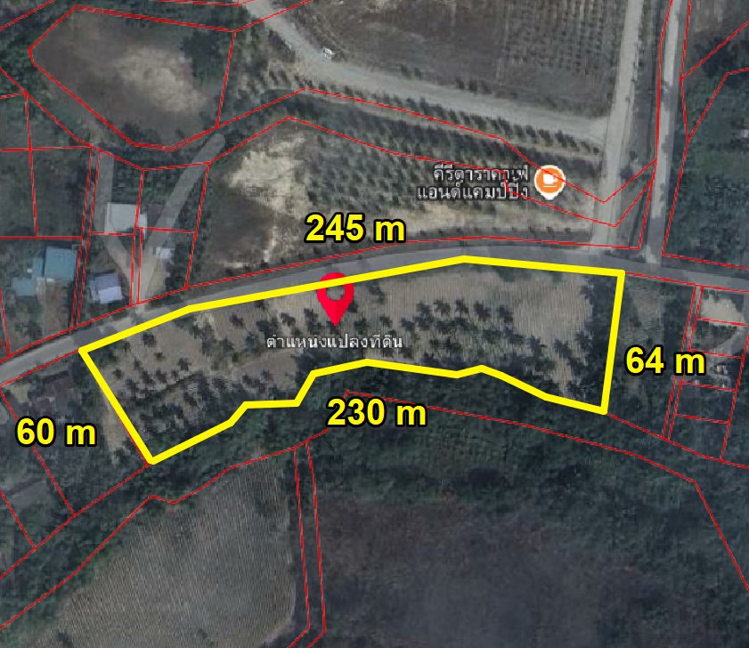 หน้ากว้างติดถนนลาดยาง 246 เมตร X ยาว 63 เมตร