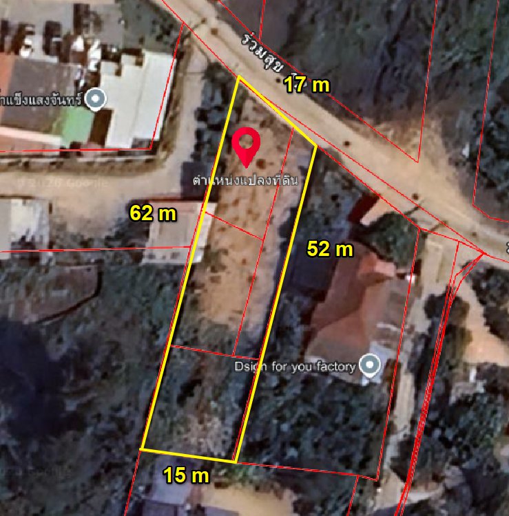 หน้ากว้างติดถนนคอนกรีต 17 เมตร X ยาว 62 เมตร