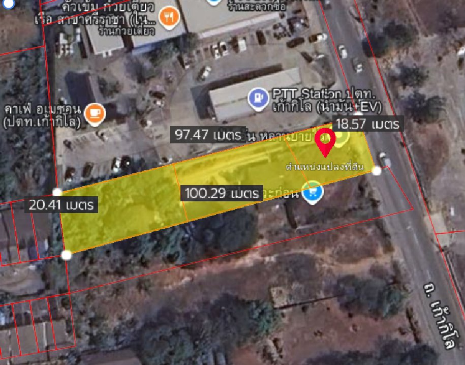หน้ากว้างติดถนนเก้ากิโล 18 เมตร X ยาว 100 เมตร