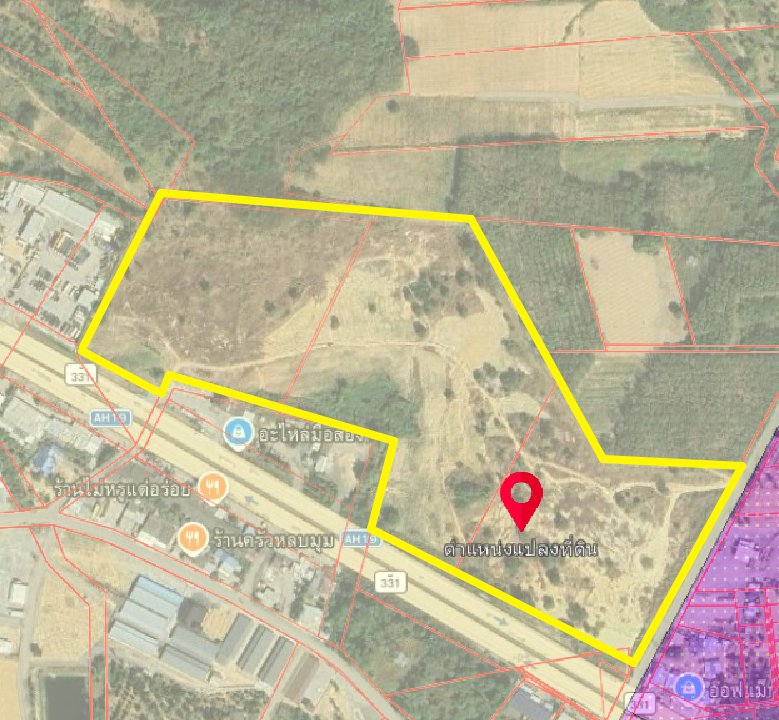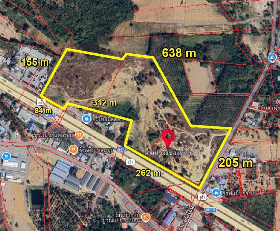 หน้ากว้างติดถนนเส้น331 346 เมตร X ยาวติดถนนลาดยาง 205 เมตร
