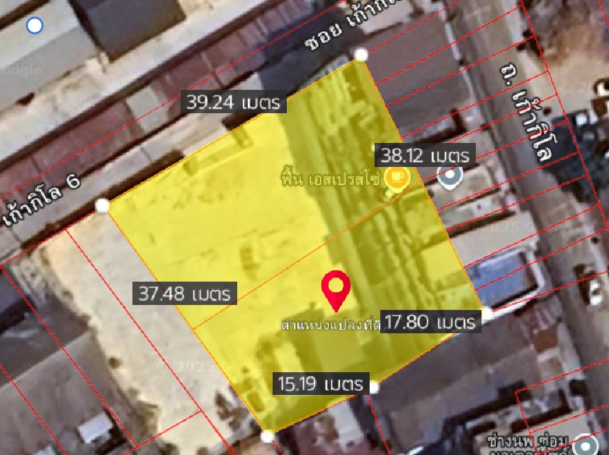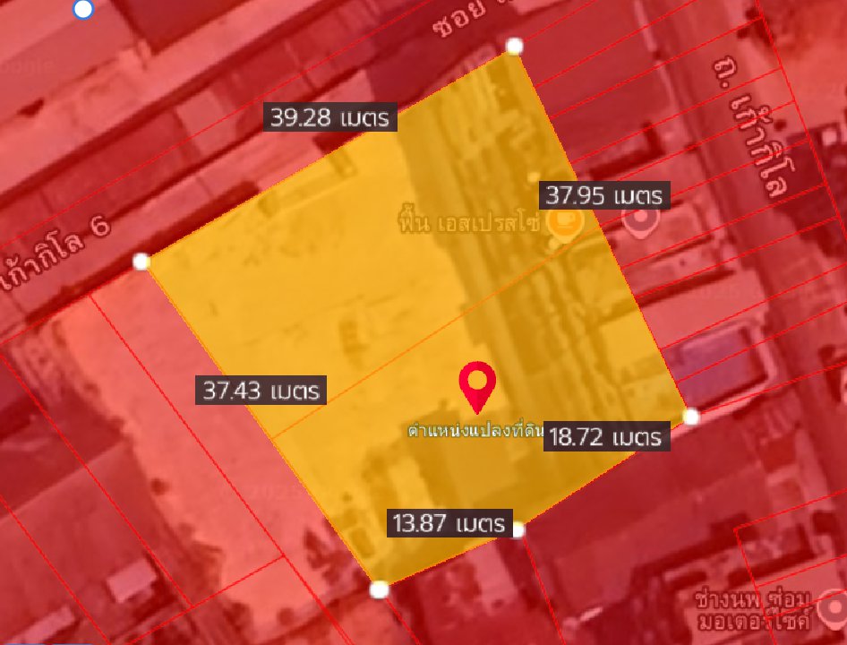 หน้ากว้างติดถนนซอยเก้ากิโล 6 40 เมตร X ยาว 37 เมตร