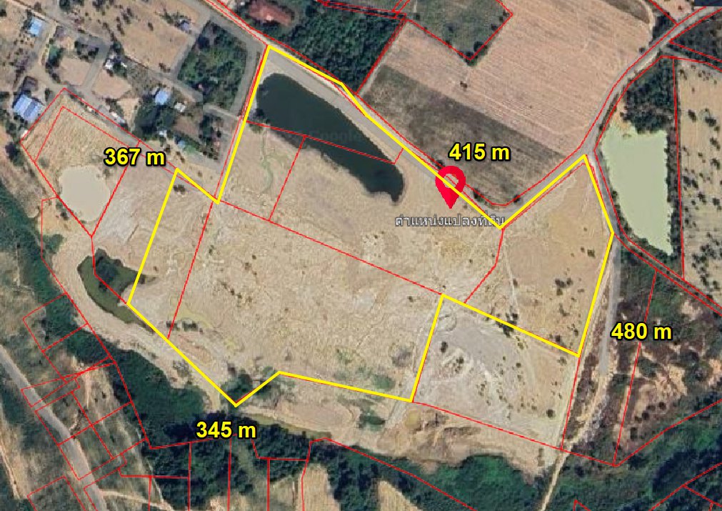 หน้ากว้าง 415 เมตร X ยาว 480 เมตร
