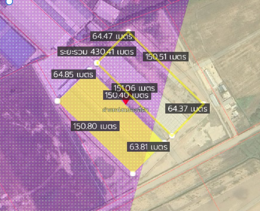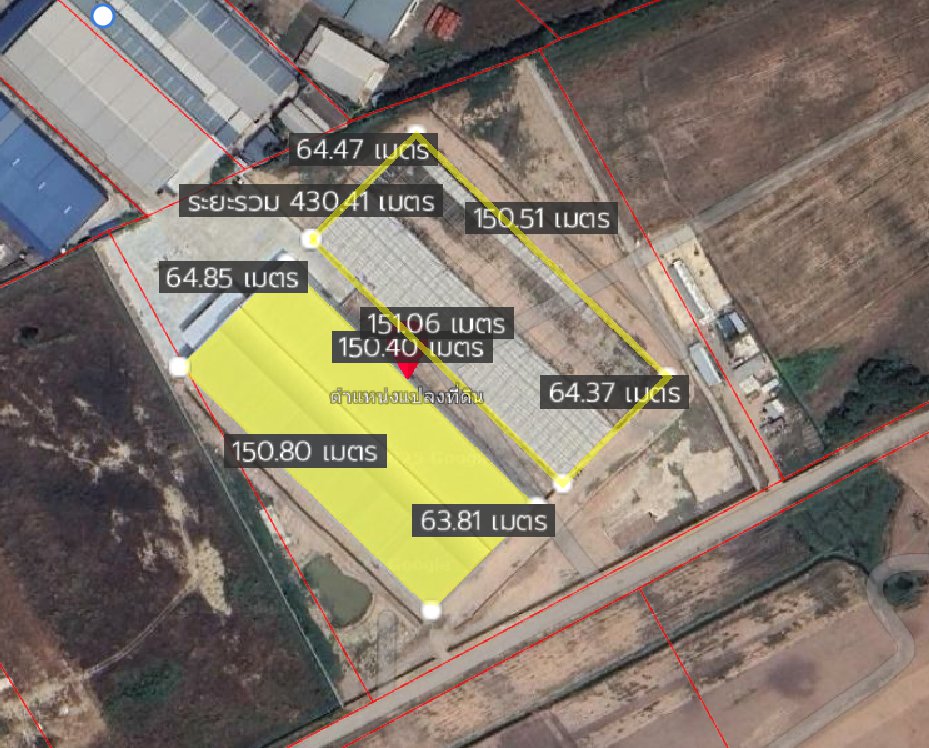 หน้ากว้าง 64 เมตร X ยาว 150 เมตร