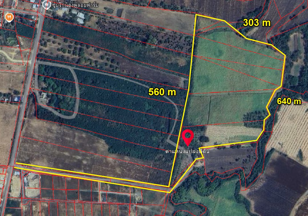 หน้ากว้าง 560 เมตร X ยาว 303 เมตร