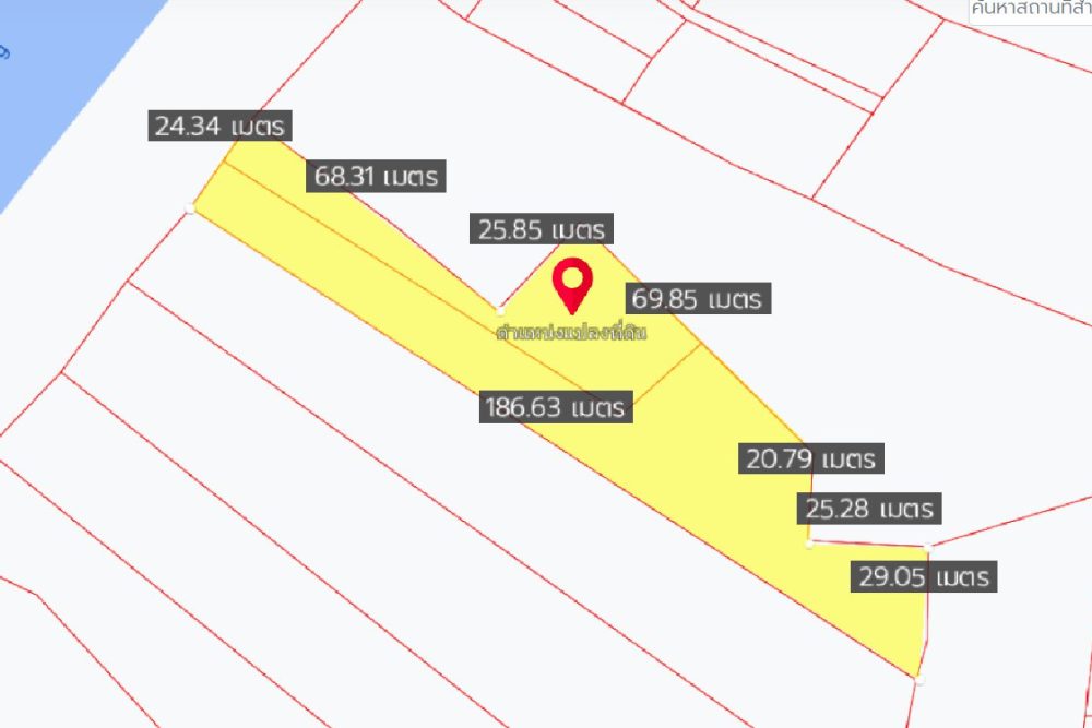 หน้ากว้างติดแม่น้ำปราจีน 24 เมตร X ยาว 186 เมตร