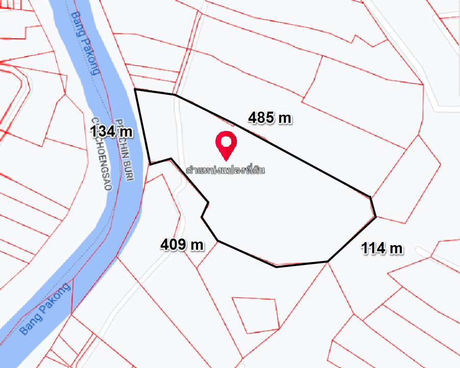 PRA-346 ขายที่ดินบางเดชะ 23 ไร่ หน้าติดถนนเส้น 319 – 200 เมตร ติดคลอง ใกล้ถนนเส้น 3017 – 500 เมตร อ.เมือง ปราจีนบุรี