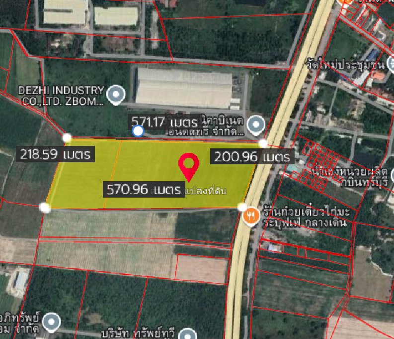 หน้ากว้างติดถนนเส้น304 200 เมตร X ยาว 570 เมตร