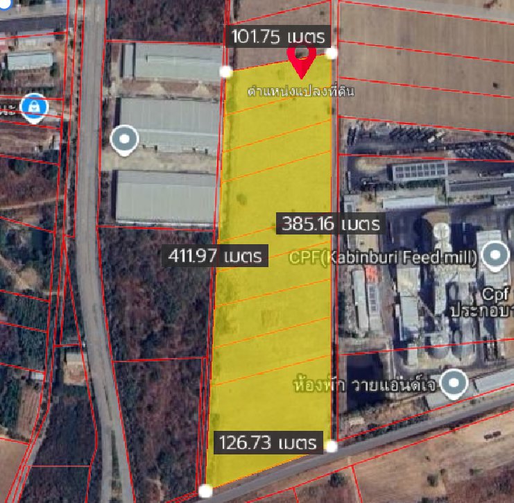 ขายที่ดินสีม่วงลาดตะเคียน 24 ไร่ ติดรง.CPF ใกล้ถนนเส้น304-700เมตร อ.กบินทร์บุรี ปราจีนบุรี