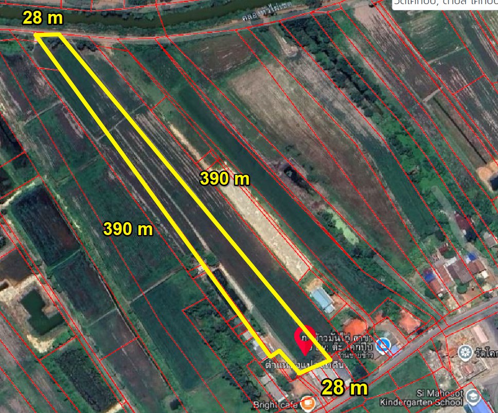 หน้ากว้าง 28 เมตร X ยาว 390 เมตร