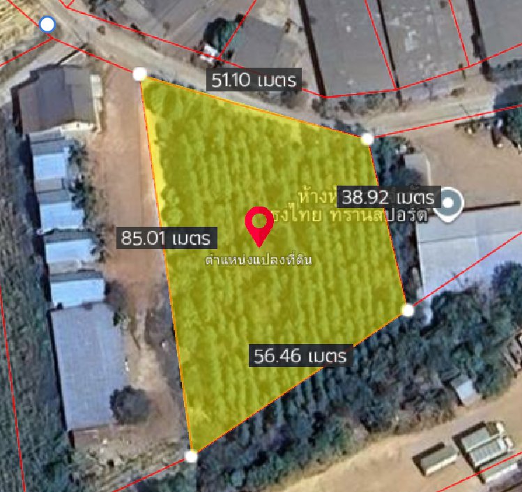 หน้ากว้างติดถนนคอนกรีต 51 เมตร X ยาว 85 เมตร