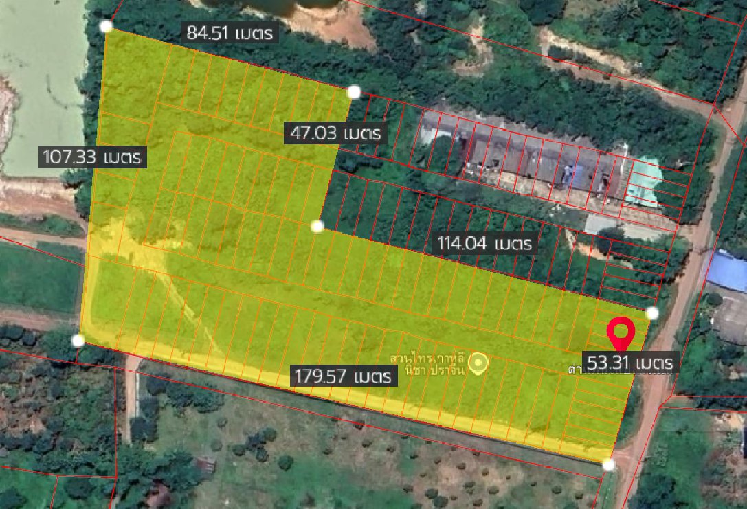 หน้ากว้างติดถนนลาดยาง 53 เมตร X ยาว 180 เมตร