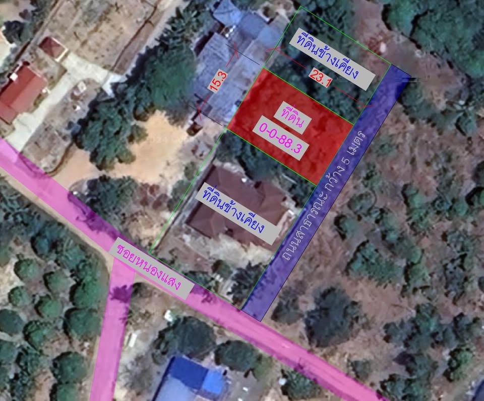 ขายที่ดินตะพงเนื้อที่ 88 ตรว. ซอยหนองแสง ใกล้หาดแม่รำพึง1.3กม. ใกล้ถนนเส้นสุขุมวิท3-1.7กม. เมืองระยอง