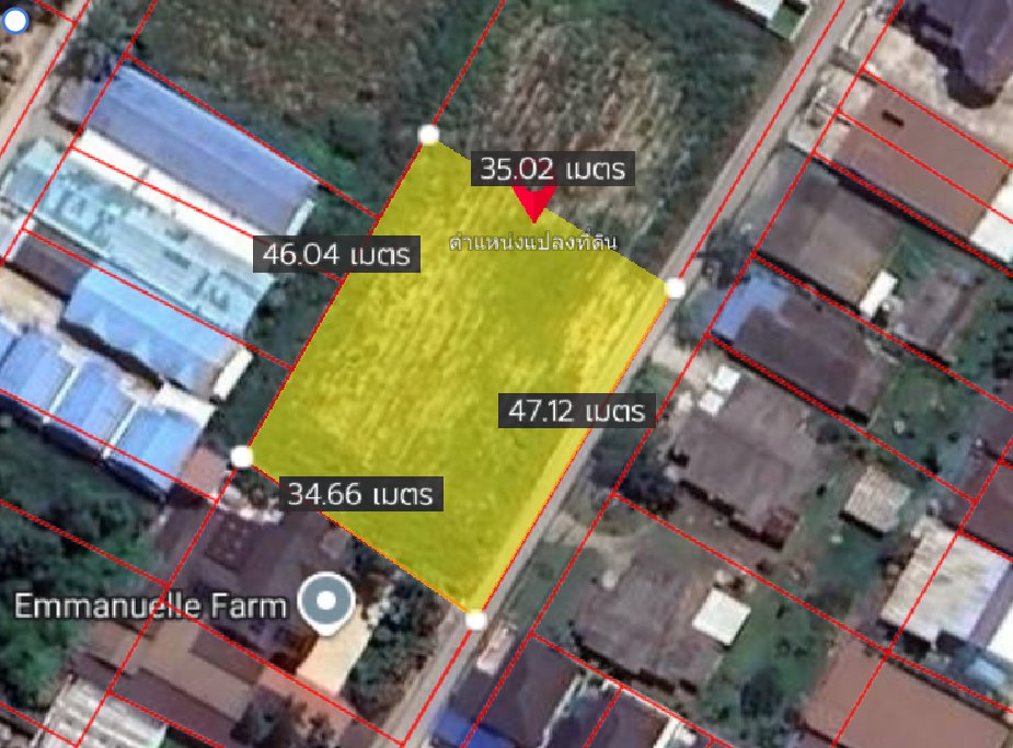 หน้ากว้างติดถนนคอนกรีต 47 เมตร X ยาว 35 เมตร