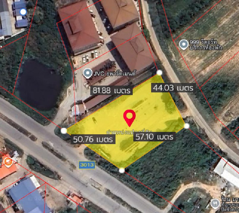 หน้ากว้างติดถนนเส้น3013 50 เมตร X ยาว 80 เมตร