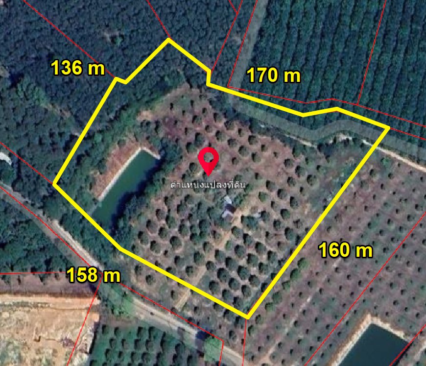 หน้ากว้างติดถนนคอนกรีต 158 เมตร X ยาว 160 เมตร