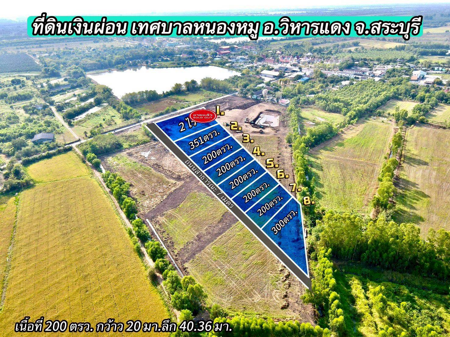 SRI-122 ขายที่ดินสด/ผ่อนบ้านหนองหมู 200 ตรว. ติดถนนคอนกรีตซอยเทศบาล5 อ.วิหารแดง จ.สระบุรี